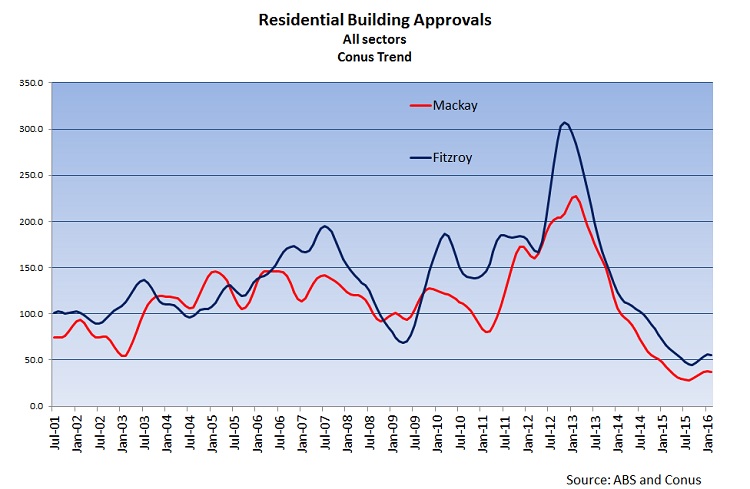 • the collapse in approvals caused by the unwinding of the mining investment boom in Rockhampton, Gladstone and Mackay regions