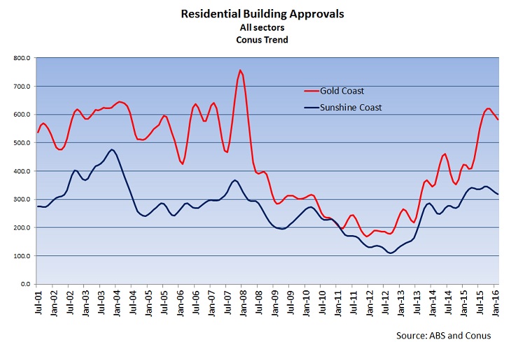 • the spectacular GFC-bust on the Gold Coast and the recovery on both the Gold and Sunshine Coasts