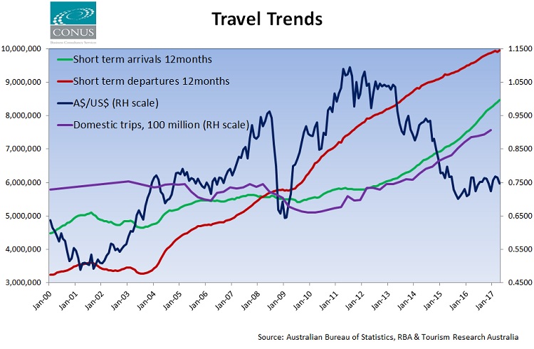 The ABS Short Term Arrivals and Departures data for April shows arrivals up 10.1% from a year ago to a total for the 12 months of almost 8.5 million.