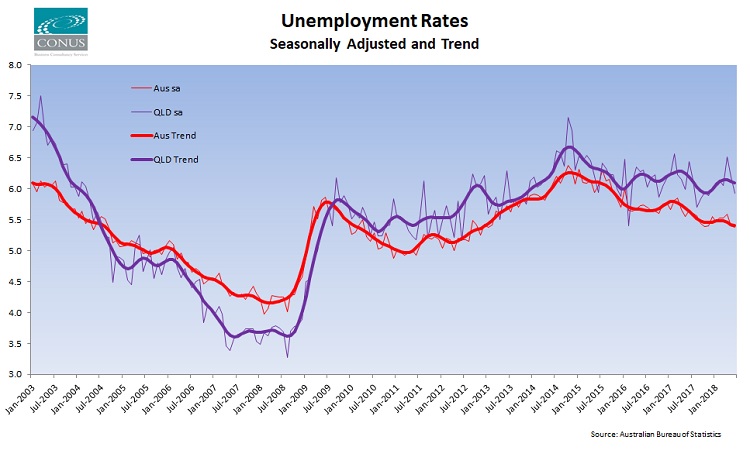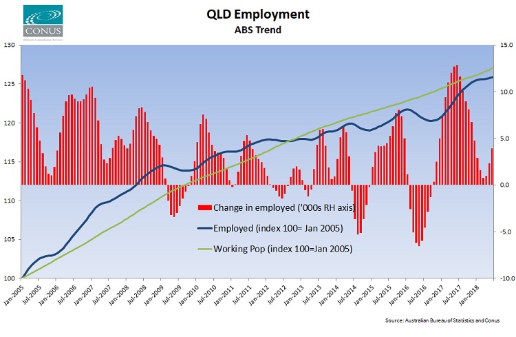 Regional labour force data will be released next Thursday at which time we will be updating our Conus/CBC Staff Selection Regional Employment Trend data series for QLD and the Conus Regional Employment Trend for NSW.
