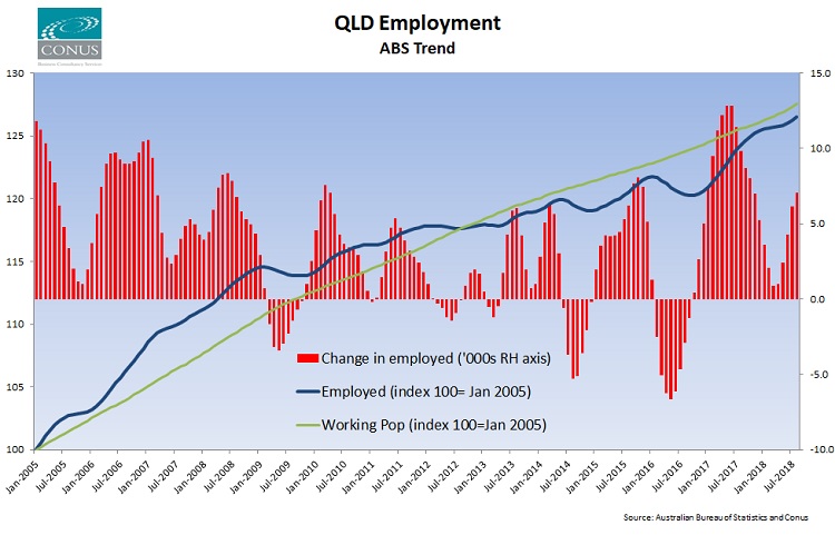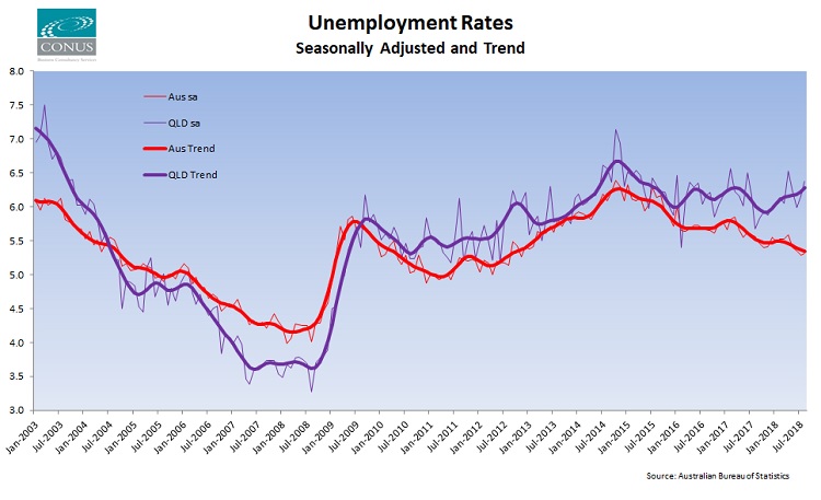 This measure suggests that the labour force in Queensland continues to struggle despite some reasonable employment growth.