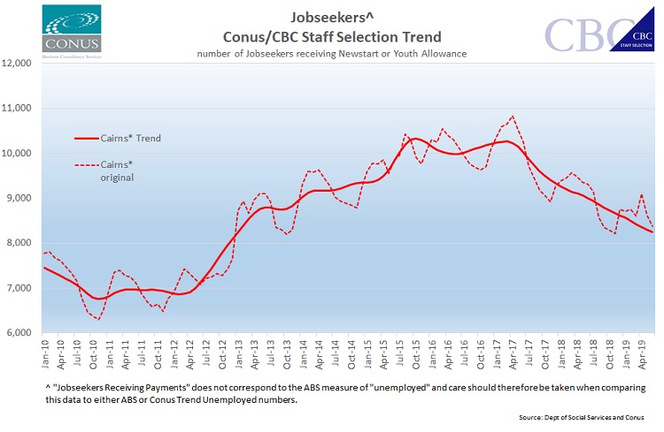 Conus/CBC Staff Selection Jobseeker Trend Cairns & Townsville – June 2019