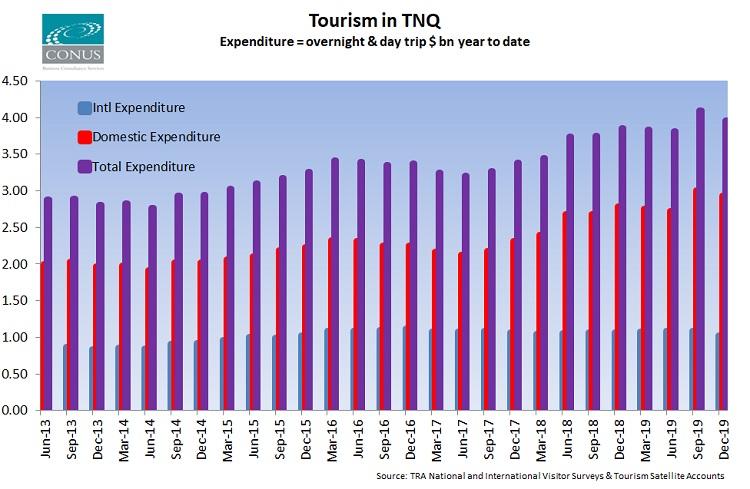 In total Australian tourism expenditure (international and domestic) was up 11.3%, Queensland 7.9% while TNQ managed barely 2.7% for the year.