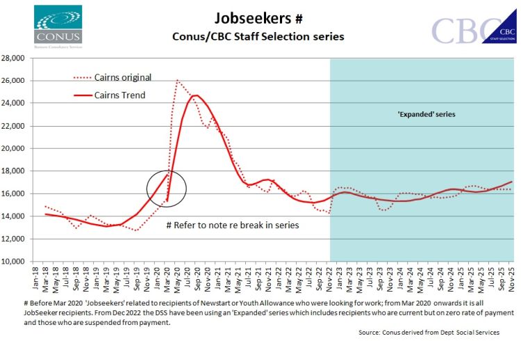 JobSeeker numbers are clearly moving higher as the labour market eases across the country. However, what is also becoming very clear is that the labour market in Cairns is holding up a lot better than elsewhere.